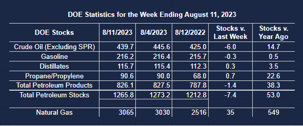 Supply/demand data in the United States for the week ending August 11, 2023 were released by the Energy Information Administration.
