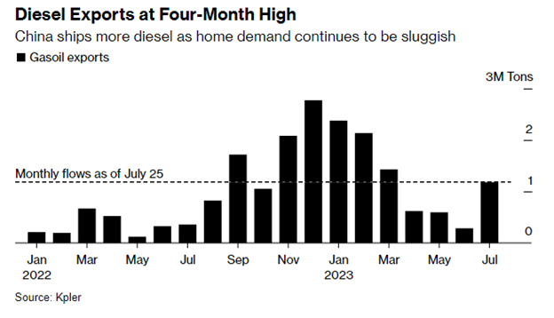 With demand falling, exports are starting to pick up. China’s refineries are benefiting from strong global distillate crack spreads and are running at near-record rates. Diesel exports are up substantially year-on-year. Reuters reported that exports of petroleum products more than doubled in July. The government sets quotas for product exports. Given the high rate of refinery runs, expectations are that exports, particularly of diesel, should expand in the 4th quarter.